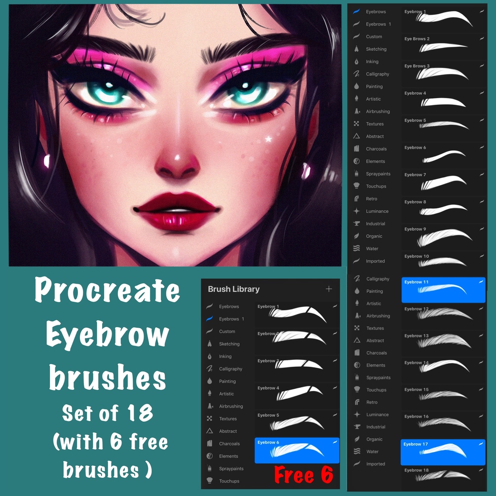 Eyebrow Brushes for Procreate-Set of 18 with 6 free brushes